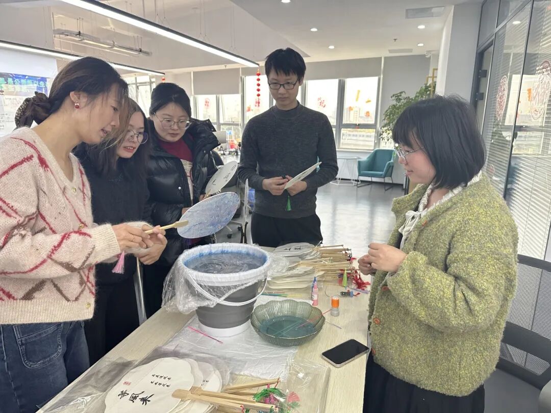 拐角处是“匠心绘扇”区域,随着五彩斑斓的颜色滴入,大家手中的扇面渐渐变得独一无二。