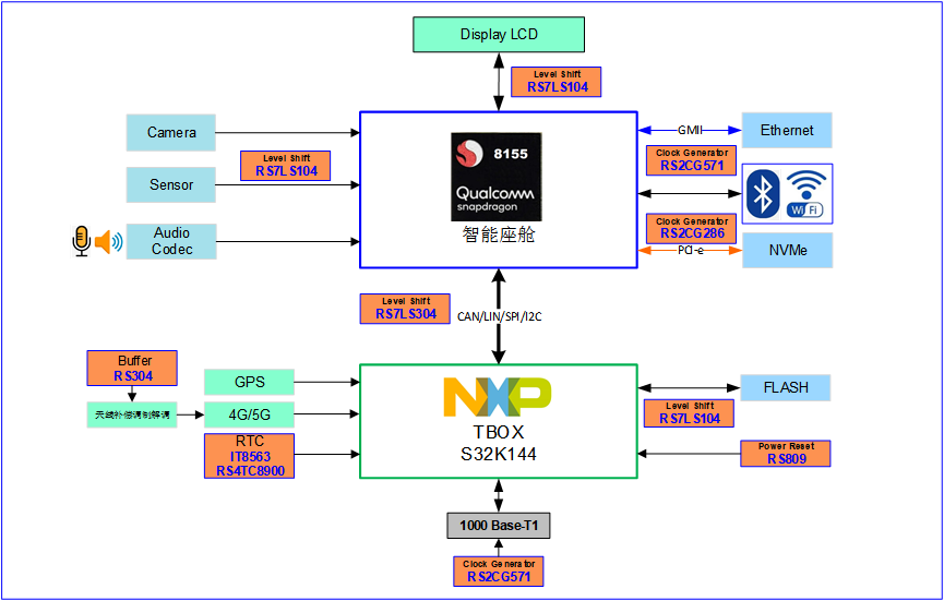 智能座舱+TBOX(PCIe、RTC、以太网、 Level shift)