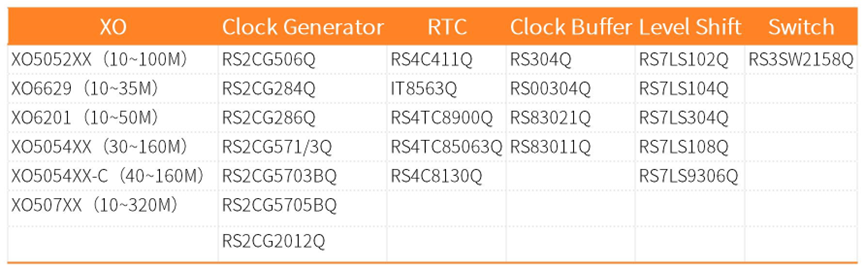 锐星微深耕时钟与模拟芯片领域,现已形成九大核心产品线,包括:晶体振荡器、复位&电压检测电路、实时时钟(RTC)、时钟缓冲器、时钟发生器、电平转换、运算放大器、信号开关及比较器。